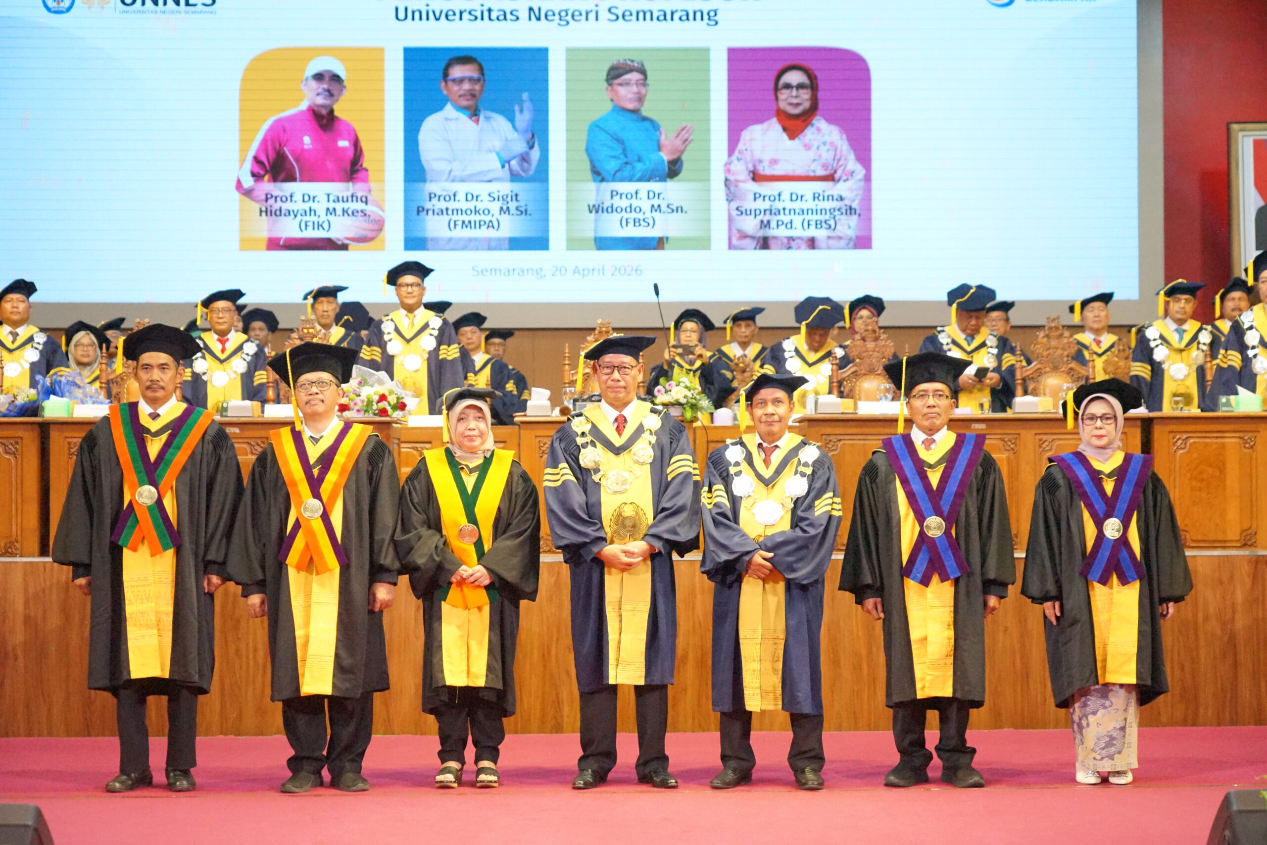 MATASEMARANG.COM – Universitas Negeri Semarang (Unnes) baru saja mengukuhkan empat profesor atau guru besar dalam berbagai bidang studi.