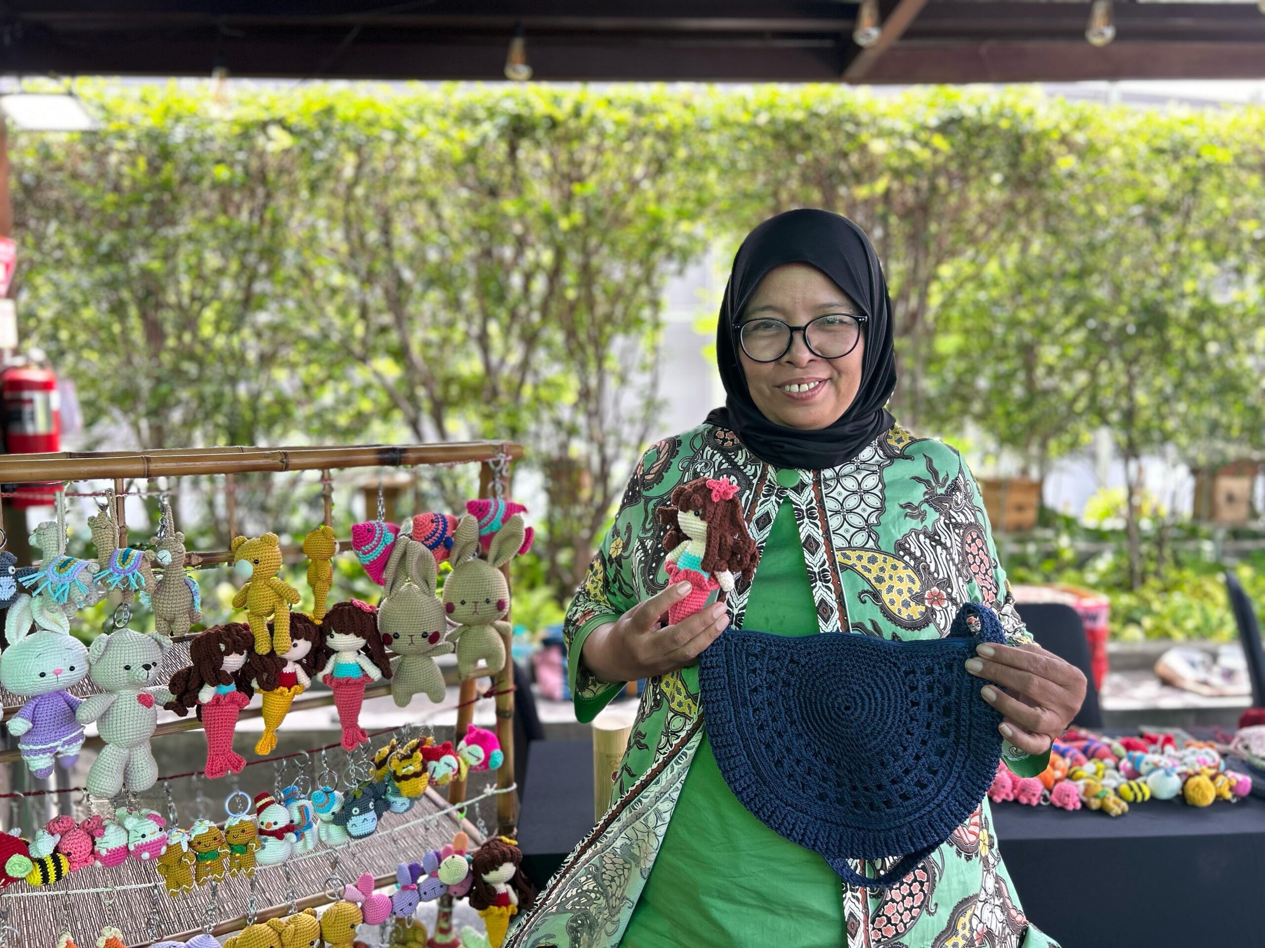 Ia melatih mereka merajut, menciptakan ekosistem kerja produktif dan kolaboratif yang mengangkat martabat banyak perempuan dengan keterbatasan fisik.