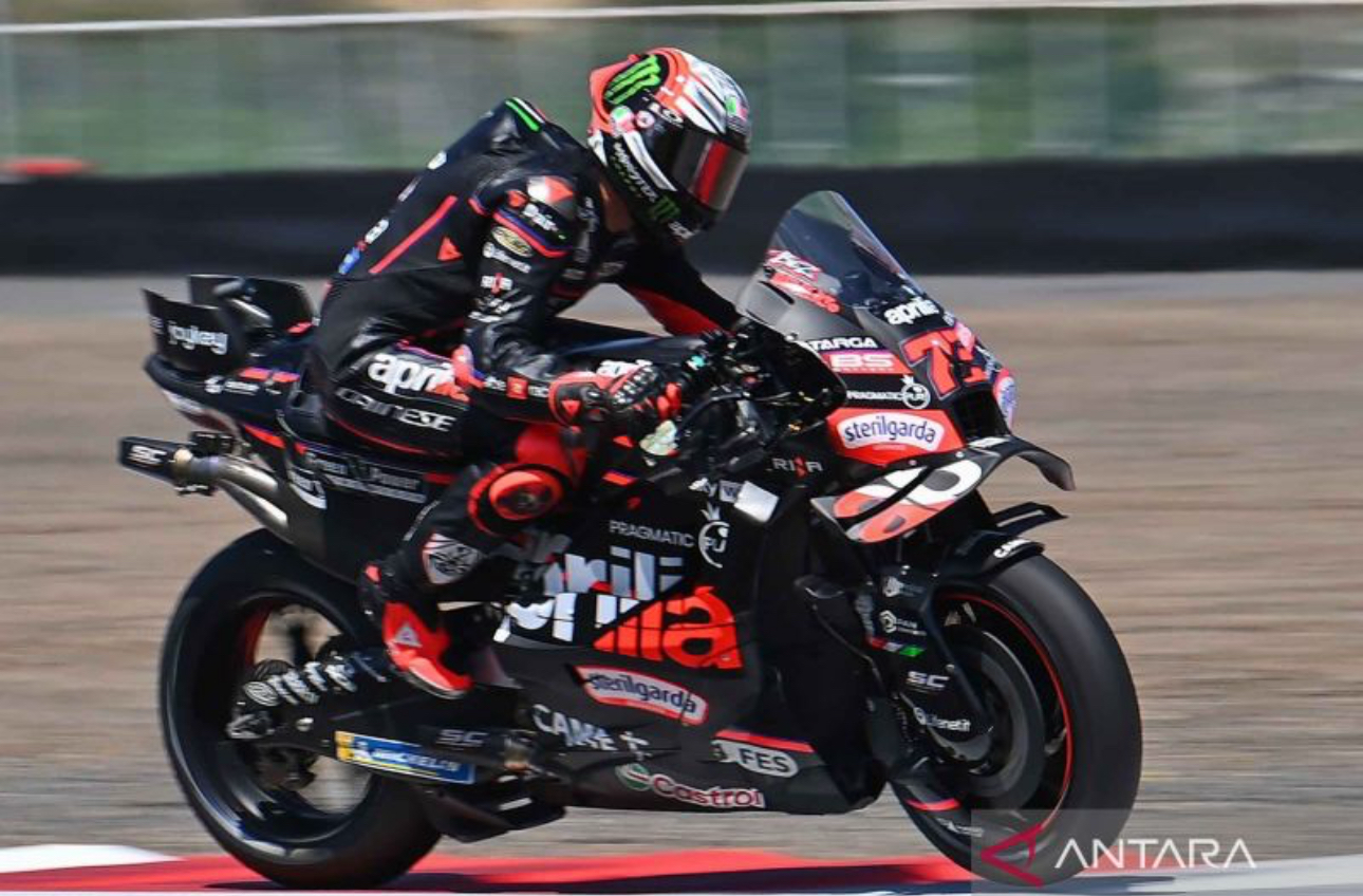 Pebalap Aprilia Racing ini tampil mengesankan dengan mencatatkan waktu tercepat pada sesi sprint race MotoGP Indonesia yang berlangsung di Sirkuit Mandalika, Lombok Tengah, Nusa Tenggara Barat, Sabtu.