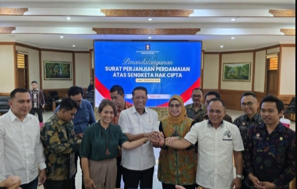 MATASEMARANG.COM- Menteri Hukum (Menkum) Supratman Andi Agtas, Jumat, menyaksikan penandatanganan perjanjian perdamaian atas sengketa hak cipta antara Lembaga Manajemen Kolektif (LMK) Sentra Lisensi Musik Indonesia (Selmi) dan PT Mitra Bali Sukses (MBS) yang memegang lisensi merek Mie Gacoan.