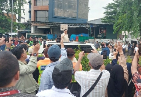Suasana di lokasi mendadak riuh saat Presiden Prabowo Subianto meninggalkan lokasi acara peresmian “wajah baru” Stasiun Tanah Abang dengan menumpangi kendaraan taktis Maung.