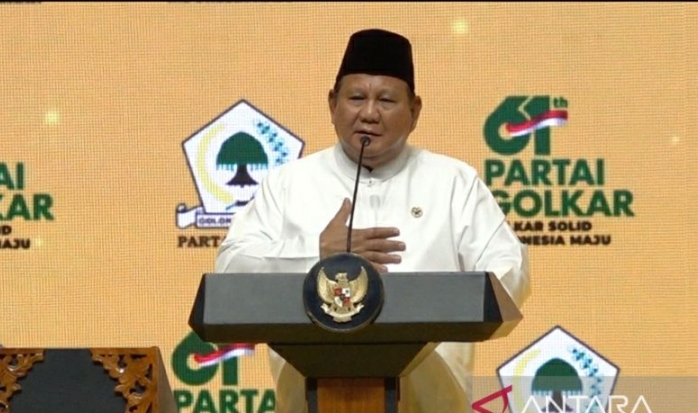 “Karena memang saya belajar politik di Partai Golkar. Beliau memang pintar menarik hati, ya. Video yang dikasih lihat video aku pakai jaket kuning,” kata Prabowo di HUT Partai Golkar yang diselenggarakan di Istora Senayan, Jakarta, Jumat malam.