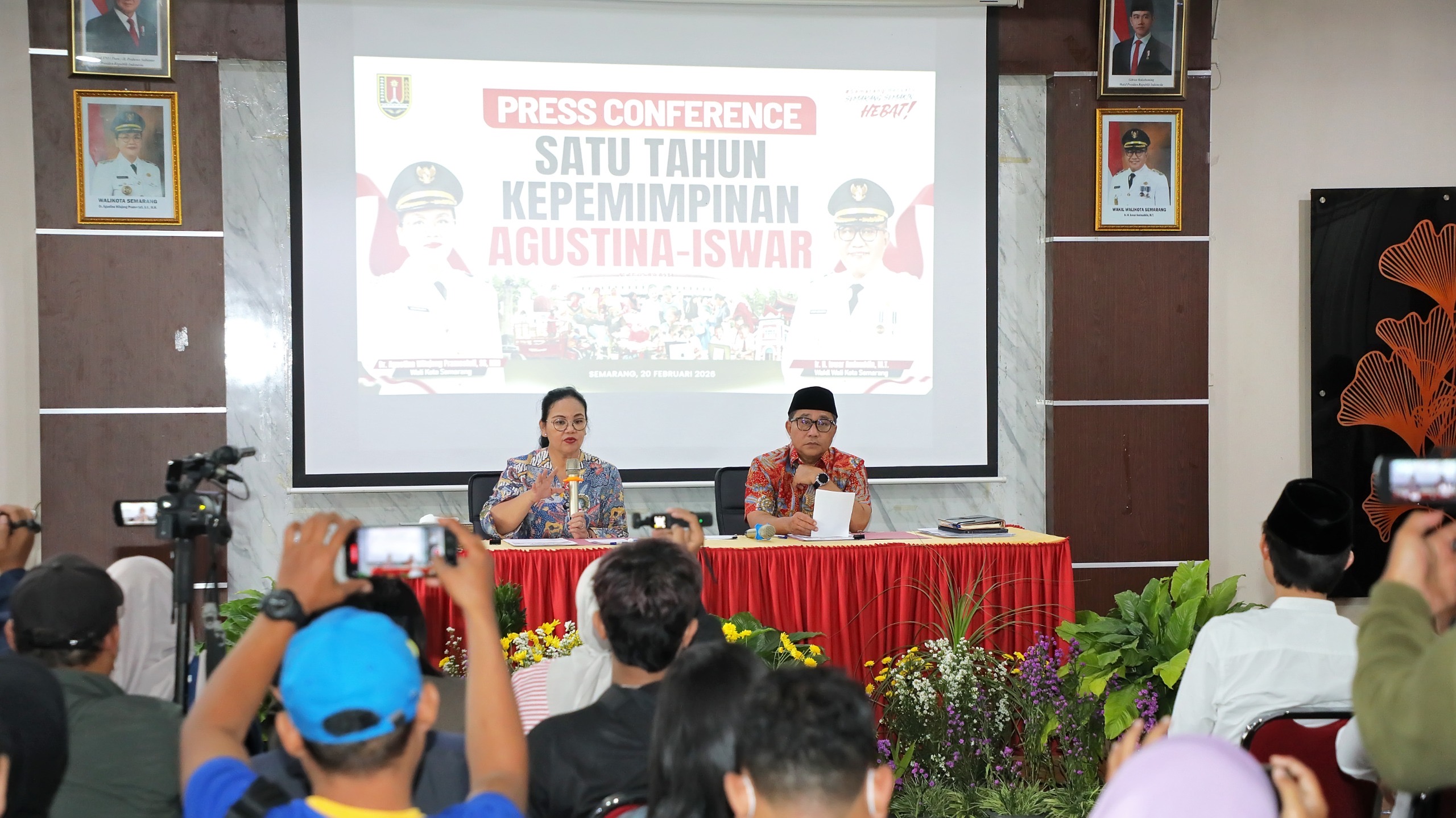 MATASEMARANG.COM – Wali Kota Semarang, Agustina Wilujeng didampingi Wakil Wali Kota Iswar Aminuddin, menggelar Press Conference Satu Tahun Kepemimpinan di Kantor Kecamatan Semarang Timur, Jumat 20 Februari 2026.